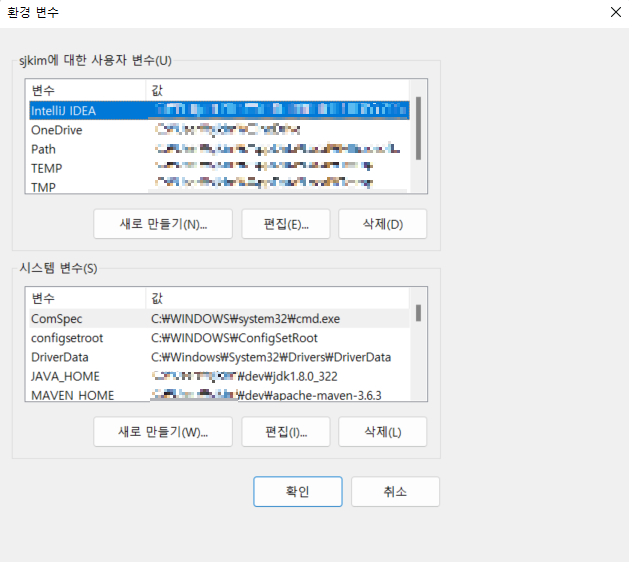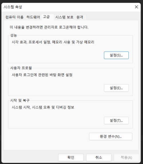 - 시스템 > 시스템 환경 변수 편집 > 환경 변수 (윈도우 11 기준)